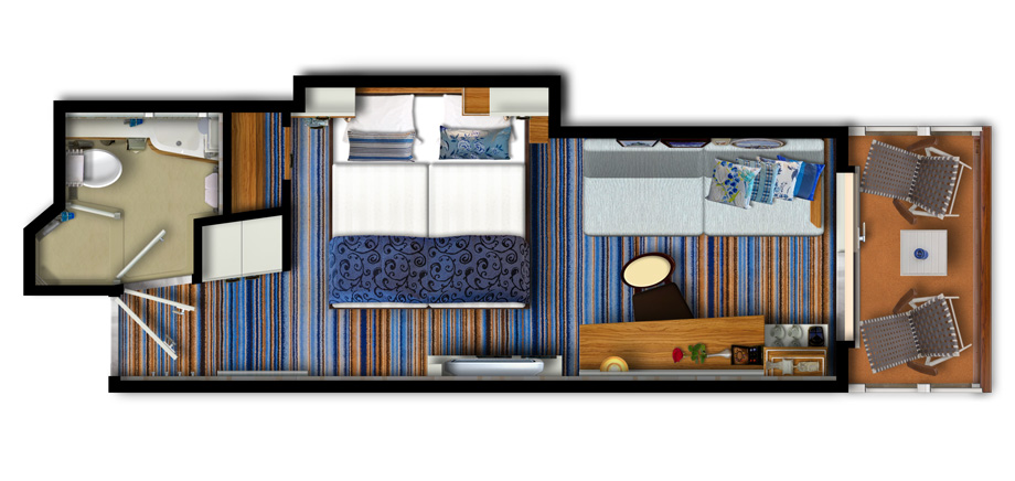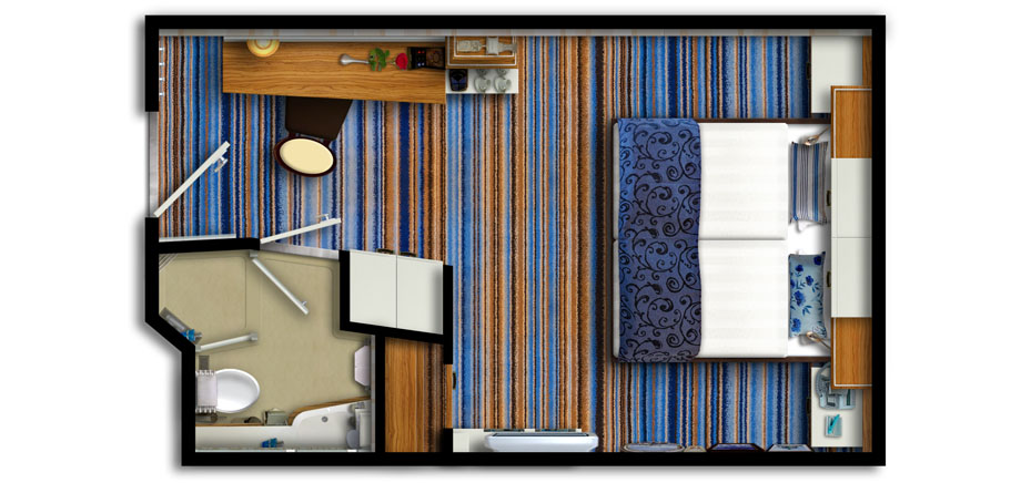 Vo všetkých kategóriách sa nachádza regulovateľná klimatizácia, safe, kúpeľňa so sprchou, sušič na vlasy, telefón, Tv s plochou obrazovkou, župany, papuče a kávovar Nespresso (v cene plavby sú aj 2 kapsule na kajutu denne).