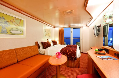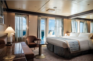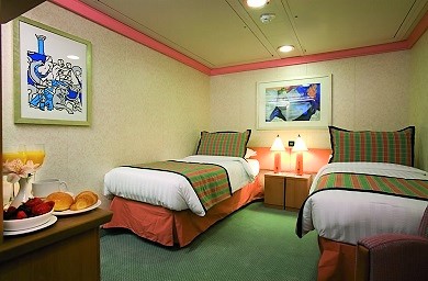 - Ubytovanie v kajute vybranej kategórie. Základné vybavenie: kúpeľňa s WC a sprchovacím kútom, 2 lôžka spojiteľné do manželskej postele, skrine, nočné stolíky, toaletný stolík a stolička, nastaviteľná klimatizácia, interaktívna satelitná TV s plochou obrazovkou, trezor, sušič na vlasy, uteráky a posteľné prádlo, Wi-Fi pripojenie (za poplatok), 24/7 kajutová služba (za poplatok).