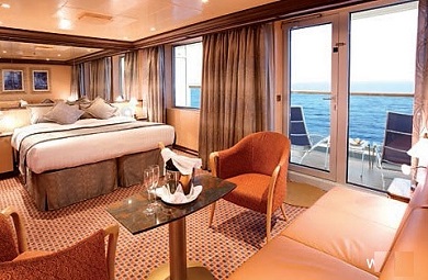 | S - Suite s balkónom 30-31 m² (vrátane balkóna). 7,9. paluba. Max 2-3 osoby. Cenový model All Inclusive .Výhody Suite. | 4 888 € 2 444 € za osobu | ||